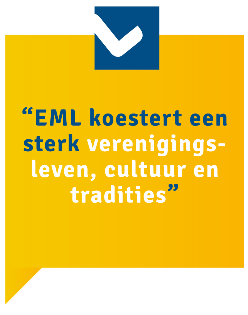 Eijsden-Margraten is ons thuis. Een gemeente van dorpen waar mensen elkaar kennen, waar verenigingen het hart van de gemeenschap vormen en waar inwoners zich verantwoordelijk voelen voor hun leefomgeving. EML komt voort uit die gemeenschap. Wij staan midden tussen de mensen en luisteren naar wat er leeft. “Lokaal. Vertrouwd. Vooruit!”. Dat is onze visie.